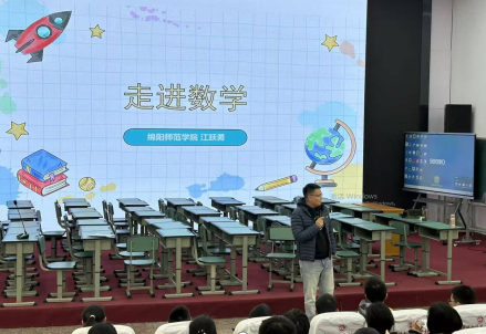 江跃勇为绵中英才学校学生作“走进数学”科普讲座 2025年12月03日 10:36 点击:[] 11月30日,我校数学与大数据学院副教授江跃勇应邀到绵阳中学英才学校为初一年级学生作“走进数学”科普讲座。 讲座中,江跃勇副教授用自然现象和生活中的实例,深入浅出地展现了数学的趣味与魅力。现场互动频繁,学生们积极参与趣味数学游戏和问答,气氛热烈。 此次活动不仅激发了初一学生对数学的兴趣,也促进了大学与中学的教育交流。 图、文:江跃勇 审核:陈强 江跃勇 上一条:师范技能冠全国 数学讲台显真章 ——数学学院郭垚鑫斩获“田家炳杯”数学组全国一等奖 下一条:我院教师参加四川省数学会2025年学术年会 【关闭】
