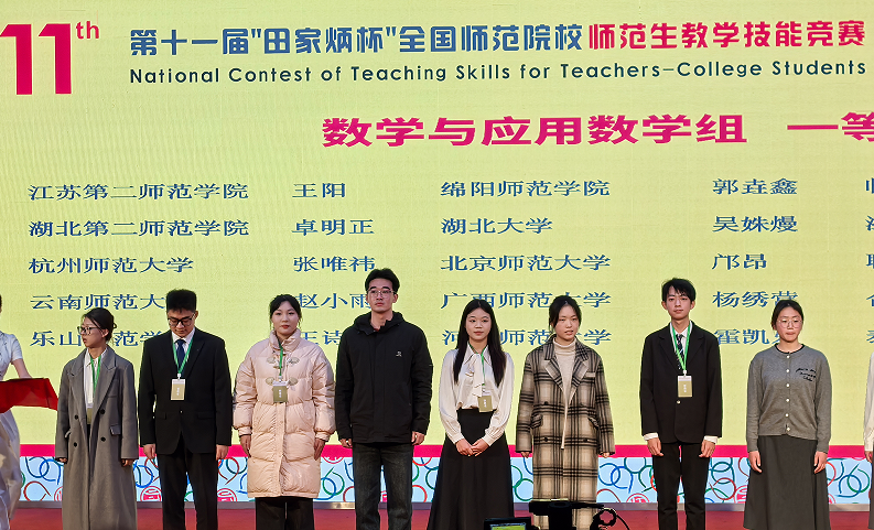 寒冬岁末传捷报,杏坛新秀展锋芒。2025年12月1日,第十一届“田家炳杯”全国师范院校师范生教学技能竞赛结果揭晓,我校数学与大数据学院2022级1班郭垚鑫同学凭借卓越表现,在数学与应用数学组中脱颖而出,勇夺全国一等奖,展现了数院学子扎实的专业功底与精湛的教学风采。